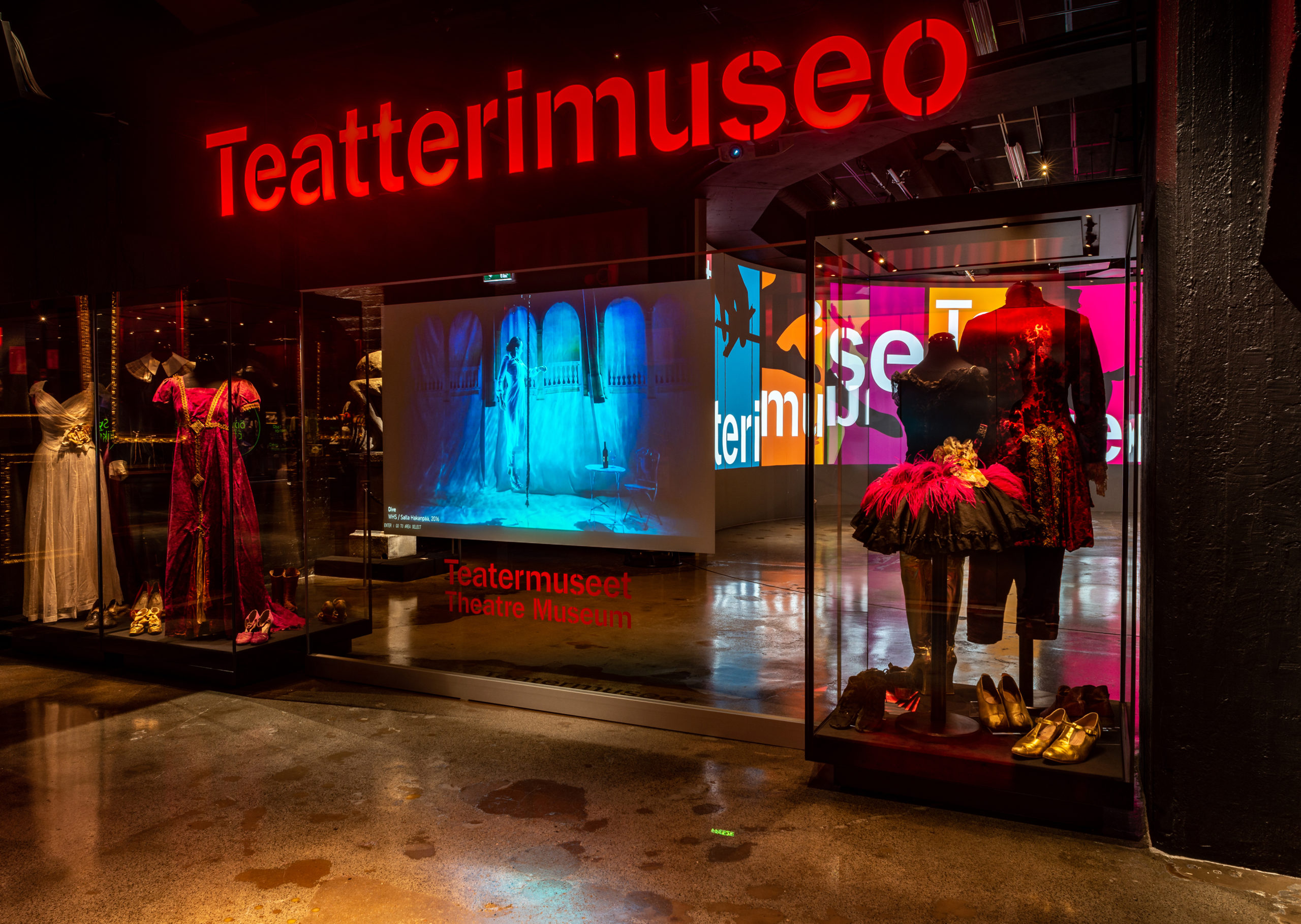 Teatermuseets utställningar bjuder in dig att upptäcka teater och dans. Everybody Dance! är en utställning om glädjen och nöjet att dansa. Kom och minns svunna tiders hitdanser och skapa nya! I utställningen Rekvisitan i huvudrollen kan du njuta av en smak av accessoarer och se hantverket hos accessoartillverkarna. I Arkadiateaterns omklädningsrum kan du byta roll eller hoppa i kostymörens eller ljusdesignerns skor. När ridån går upp är en plats på scenen ledig!