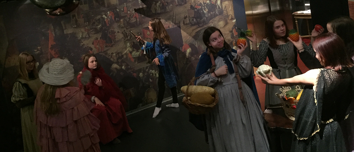 Teatterimuseon perhepäiväohjelman toteuttavat Teatteri ILMI Ö:n Teatterikoulun oppilaat.