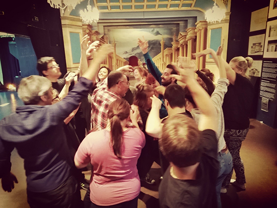 ”Ryhmä rämä” Teatterimuseon lavalla.