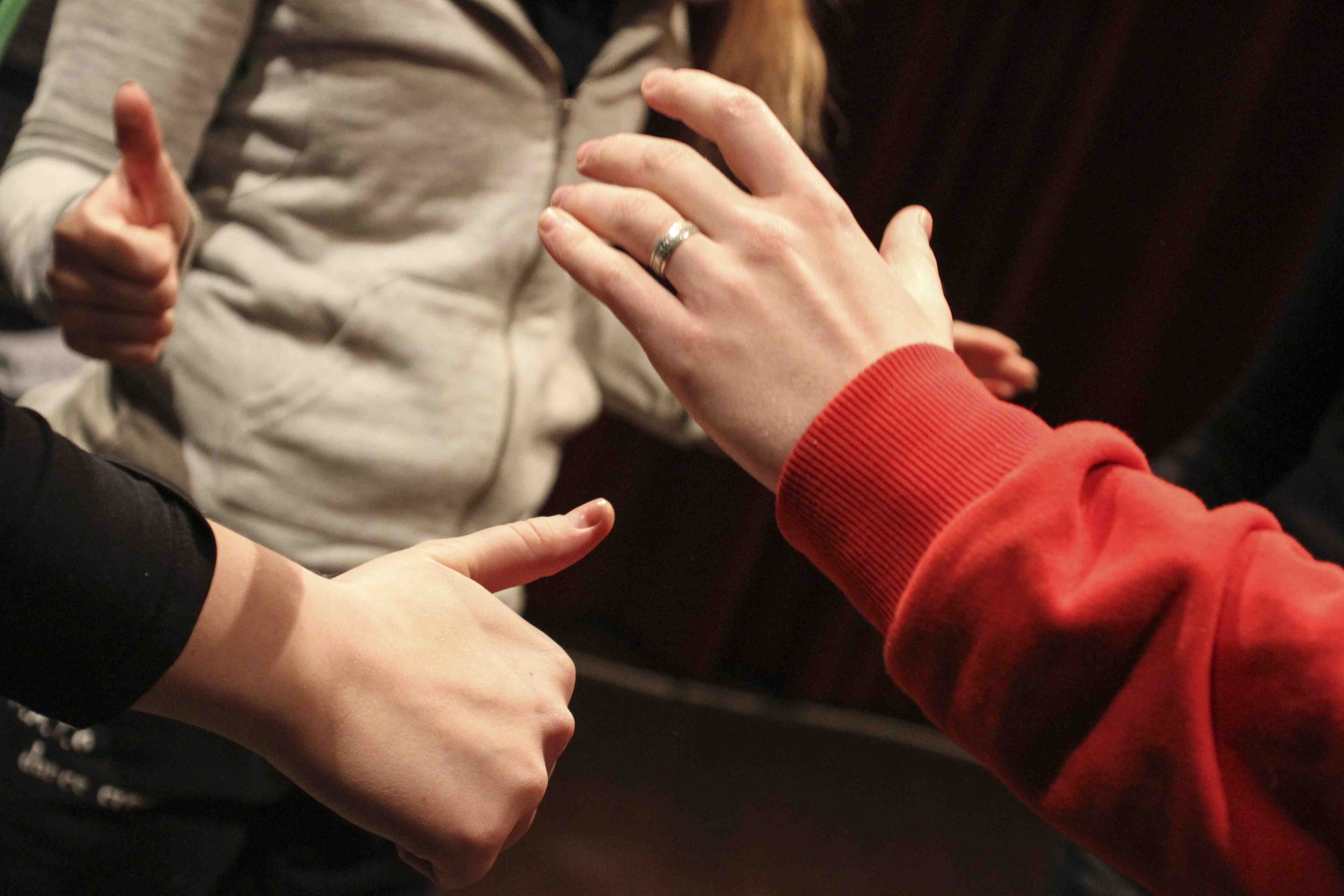 Peukun nappaus. Seistään ringissä. Jokainen nostaa oikean peukalonsa pystyyn sivulle, vieressä olevan viereen. Katsokaa että piirissä on tilaa. Jokainen nostaa myös vasemman kätensä vaanimaan, valmiina nappaamaan, vasemmalla puolellaan oleva peukalo. Kun ohjaaja laskee kolmeen, tarkoituksena on pelastaa oma pystyssä oleva oikea peukalo vetämällä se alas ja samanaikaisesti napata vasemmalla kädellä vieressä oleva peukalo kiinni. Tätä voi kokeilla muutaman kerran ja sitten vaihtaa käsiä.