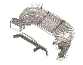 Katsomo rakennettiin niin, että vuoren rinne tuki sitä ja sen edessä oli esiintymisalue, eli orchestra.