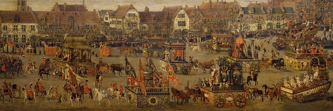 Näytelmäsarja valtasivat kaupunkien torit, pihat ja kadut muuttuivat suurjuhliksi, johon koko kaupunki osallistui.