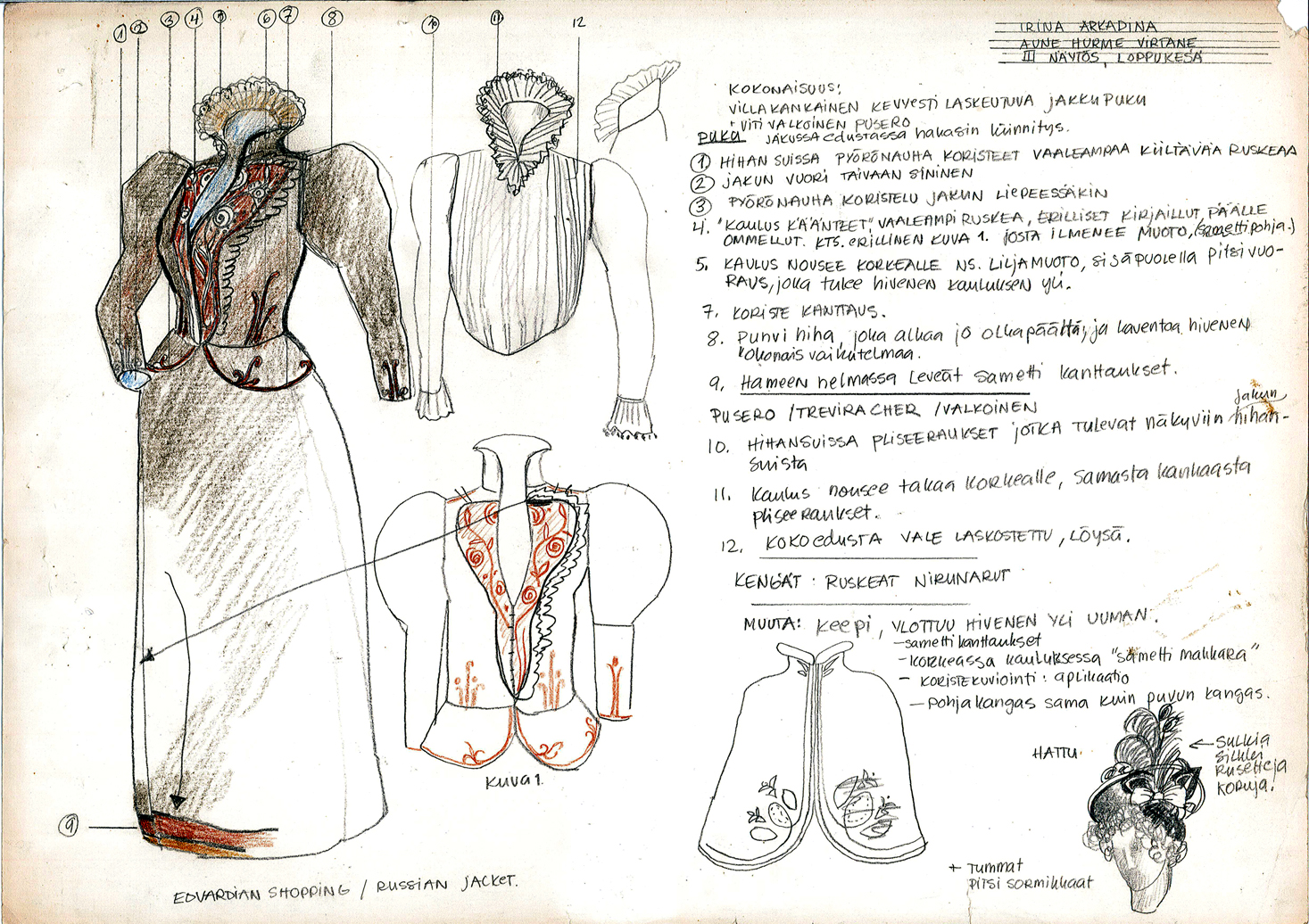 Ojamaa loi pukuluonnoksiin tietyn yleisilmeen, jonka pohjalta yksittäisten henkilöhahmojen lopulliset puvut löytyivät kokeilemalla yhdessä näyttelijöiden kanssa: