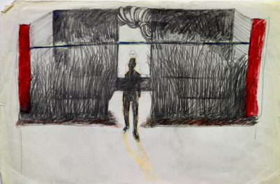 Tämä osio näyttelystä esittelee Ojamaan suunnitteluprosessin työvaiheita kohti valmista teatterivisualisointia. Useimpien Ojamaan töiden lähtökohtana on ollut näytelmäteksti, jonka pohjalta esityksen visualisointia on lähdetty rakentamaan.