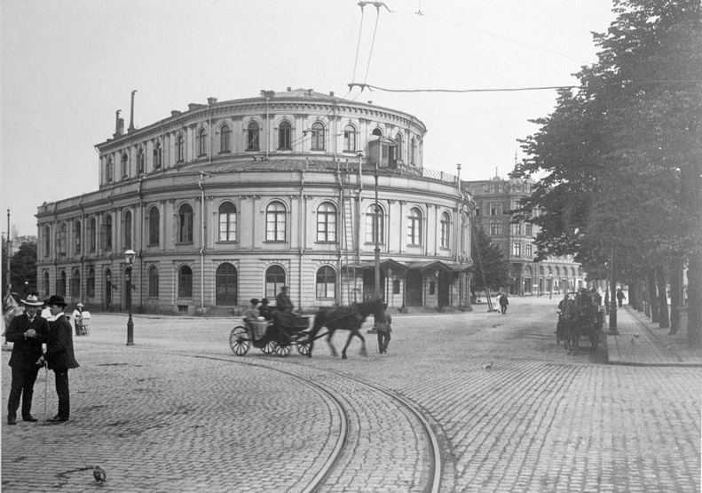Erottajalle nousi 1860 Helsingin ensimmäinen kivinen teatteritalo, Nya Theatern (vuodesta 1870 Nya Teatern), joka toimi ensimmäisinä vuosinaan