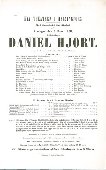 kiertävien seurueiden näyttämönä. Teatteri tuhoutui tulipalossa jo 1863. Samalle paikalle kohosi 1866 uusi teatteritalo. Siinä aloitti toimintansa kiinteä teatteri, jonka henkilökunta kiinnitettiin Ruotsista. Teatteri vaihtoi 1887 nimensä Svenska Teaterniksi.