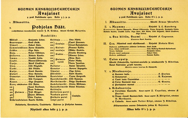 Teatterin peruskiven muurauksesta 1900 ja vihkijäisjuhlasta 1902 muodostui suuria suomalaismielisiä tilaisuuksia. Kansallishenkisten runojen ja laulujen lisäksi esitettiin mm. otteita Aleksis Kiven