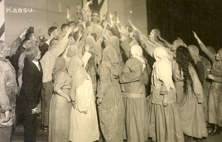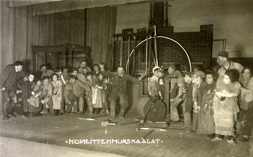 Kosti Elon ekspressionistisen kauden ohjauskokeiluihin kuuluivat tarkkaan sommitellut ja rytmitetyt joukkokohtaukset, joissa harrastaja- ja iltanäyttelijöistä kootut näyttelijät liikkuivat yhtenäisenä massana ja lausuivat repliikkejä puhekuorona. Näin luotiin tehostavaa liikettä ja voimakkaita vaikutelmia.